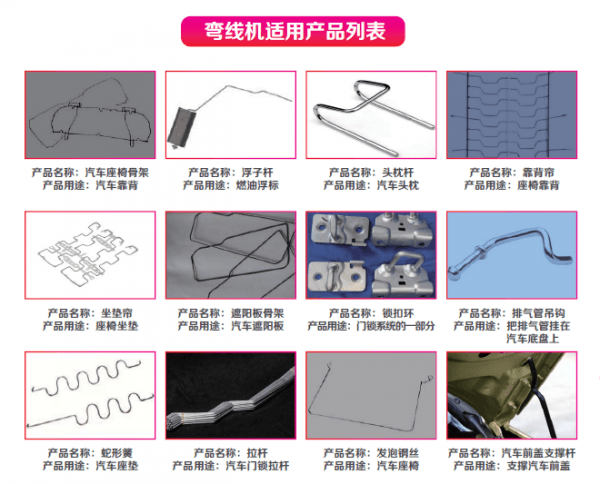 韩国nice自动弯线机适合生产工件:汽车油管,支撑杆,头枕 ,浮子杆,排气管,连接伐,座椅骨架等。