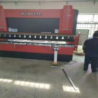 WC67K系列折弯机说明:一、整机主要性能特点:WC67K系列液压板料折弯机可配置多种型号专用数控系统:DA41、E21+、MD20等;具有多工步编程功能,能够实现多步程序自动运行、连续定位,实现后挡料及滑块位置自动精确调节;折弯计数,实时显示加工数量,断电记忆后挡料滑块位置、程序及参数;后挡料采用进口滚珠丝杠和直线导轨,确保了后挡料的定位精度,机器加工精度更高。1、机架采用全钢整体焊接结构,通过正火及高频振动消除内应力,保证机床的整体精度,有##的刚度,有极好的抗扭曲、抗倾斜能力。加厚的工作台板、加厚的滑块,使整机具有很高的刚性,因此折弯时滑块、工作台变形极 小,工件具有极好的直线度和角度一致性。2、参照德国DIN55222T2-80标准设计。 3、液压系统采用集成式控制系统,减少管路安装,采用进口密封圈,提高了机床的工作稳定性,外形美观简洁。4、机床的主油缸活塞采用了航天技术-表面镍磷处理,其硬度可达HRC60以上,与活塞相对运动的导套采用了有自身润滑性的锌基耐磨合金,可使油缸长期处于良好的工作状态。 5、采用扭轴同步,机械挡块,可靠、经济、精度高。6、后挡料距离、上滑块行程由数控系统自动调节,亦可手动调节方便操作。 7、上模配有绕度补偿机构。 二、数控系统功能:台湾台达触摸屏中文数控系统(或者荷兰Delem数控系统): 1、具有单向和双向定位功能,能有效消除丝杠隙。2、具有退让选料功能,避免挡料装置与工件的干涉,减少磨损,提高定位精度。3、具有自动或手动搜索参考点功能。具有断电位置记忆功能,对参数、位置及程序进行现场保护。4、具有多步加工编程功能,可实现多步动运行,完成多工步零件一次性加工,提高生产效率。 5、具有一轴伺服电机自动控制滑块的上下行程调节,另一轴伺服电机控制后挡料。三、主要配置: 1、油缸的主要密封件由日本华尔卡公司生产。 2、电器箱内主要件由法国施耐德生产。3、液压系统全部采用插装阀控制,液压主原件采用德国HOERBIGER公司 4、液压泵采用航天标准低噪音内啮合齿轮泵。5、专精制造厂加工的油缸,成套进口的密封圈,克服漏油现象。 6、选用中国台湾HIWIN 直线导轨和滚珠丝杠。7、液压系统选用德国EMB管路接头,保证液压系统长期运行中的稳定。